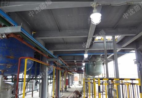 防爆燈應用現場。在現場,防爆燈采用了吸頂式安裝方式,由防爆活接頭連接至頂部的防爆接線盒。防爆燈外殼采用鋁合金壓鑄殼體,表面高壓靜電噴塑,保護網采用優質碳素鋼鍍鋅后表面噴塑,雙重防腐,防爆燈內裝節能光源,性能穩定可靠。防爆燈為企業提供了安全可靠的照明環境。