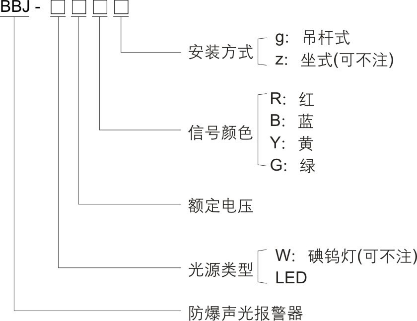 報警器,則產(chǎn)品型號為 BBJ-gR ExdⅡBT6。